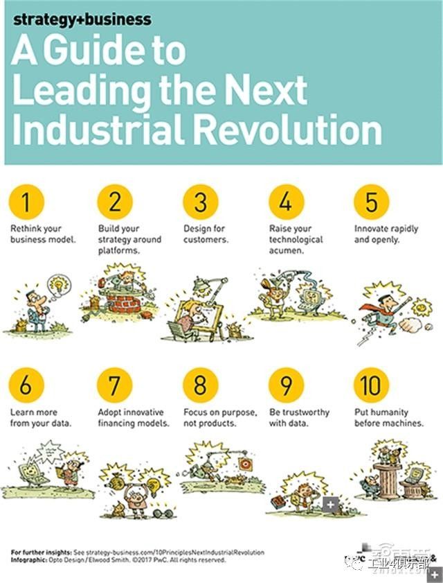 普華永道聯(lián)合思略特提出的第四次工業(yè)革命報(bào)告書,報(bào)告從制定戰(zhàn)略、擁抱新業(yè)務(wù)、創(chuàng)造更好的世界三個(gè)層面出發(fā),結(jié)合普華永道的全球CEO調(diào)研報(bào)告,總結(jié)出了十大原則。